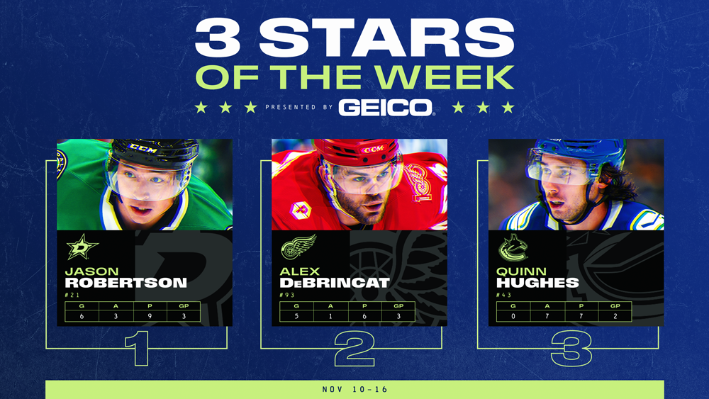 NHL Stars of the Week – Robertson Take First Star Honors